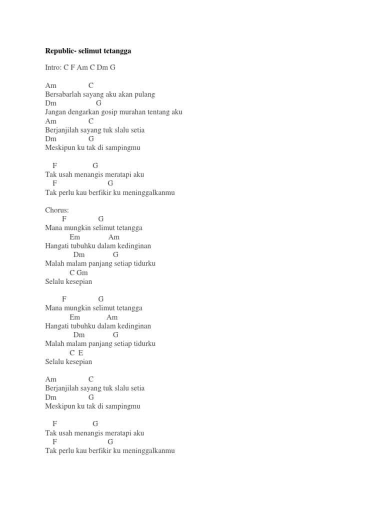 Lirik Dan Chord Lagu Selimut Tetangga Repvblik Bersabarlah Sayang Aku Akan Pulang Tribunnews Com Mobile